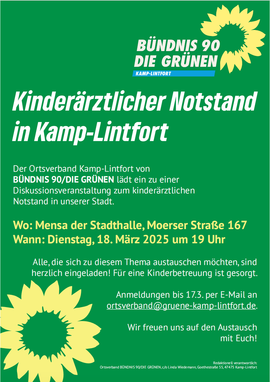 Anmeldungen bis 17.3. per E-Mail an ortsverband@gruene-kamp-lintfort.de.